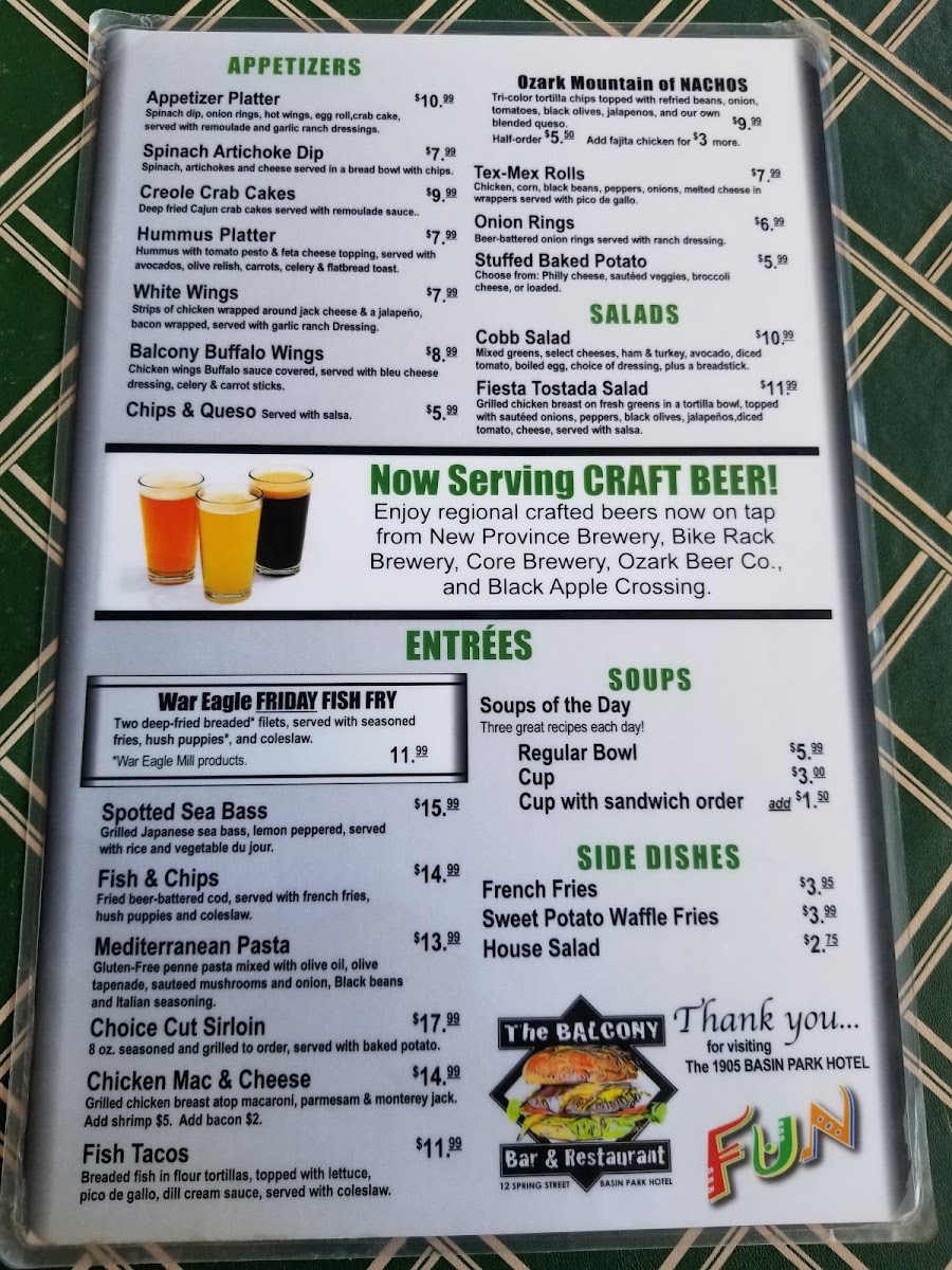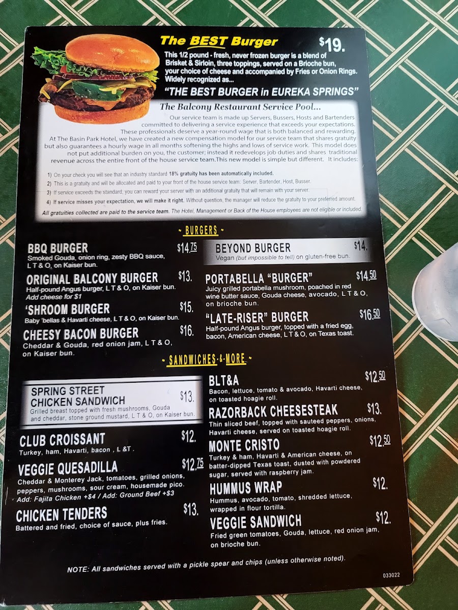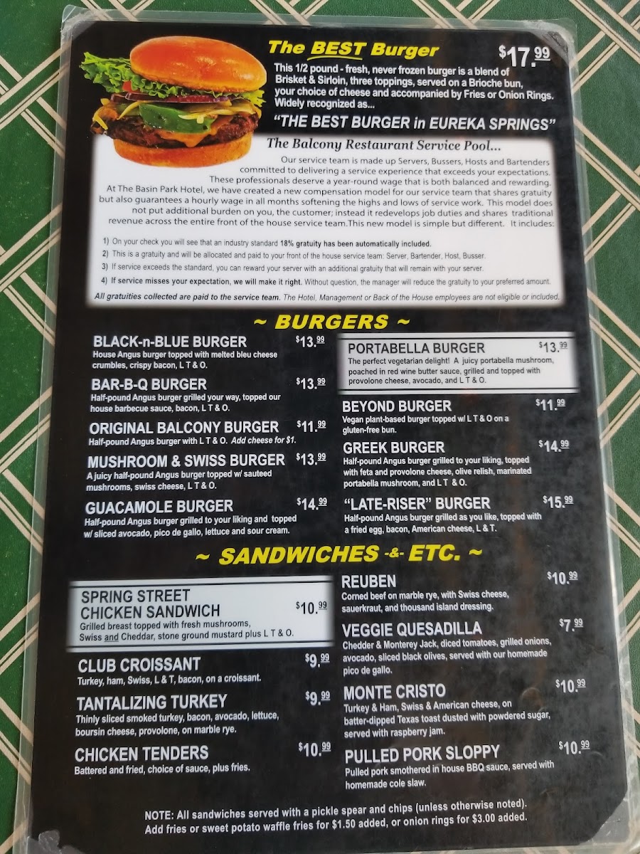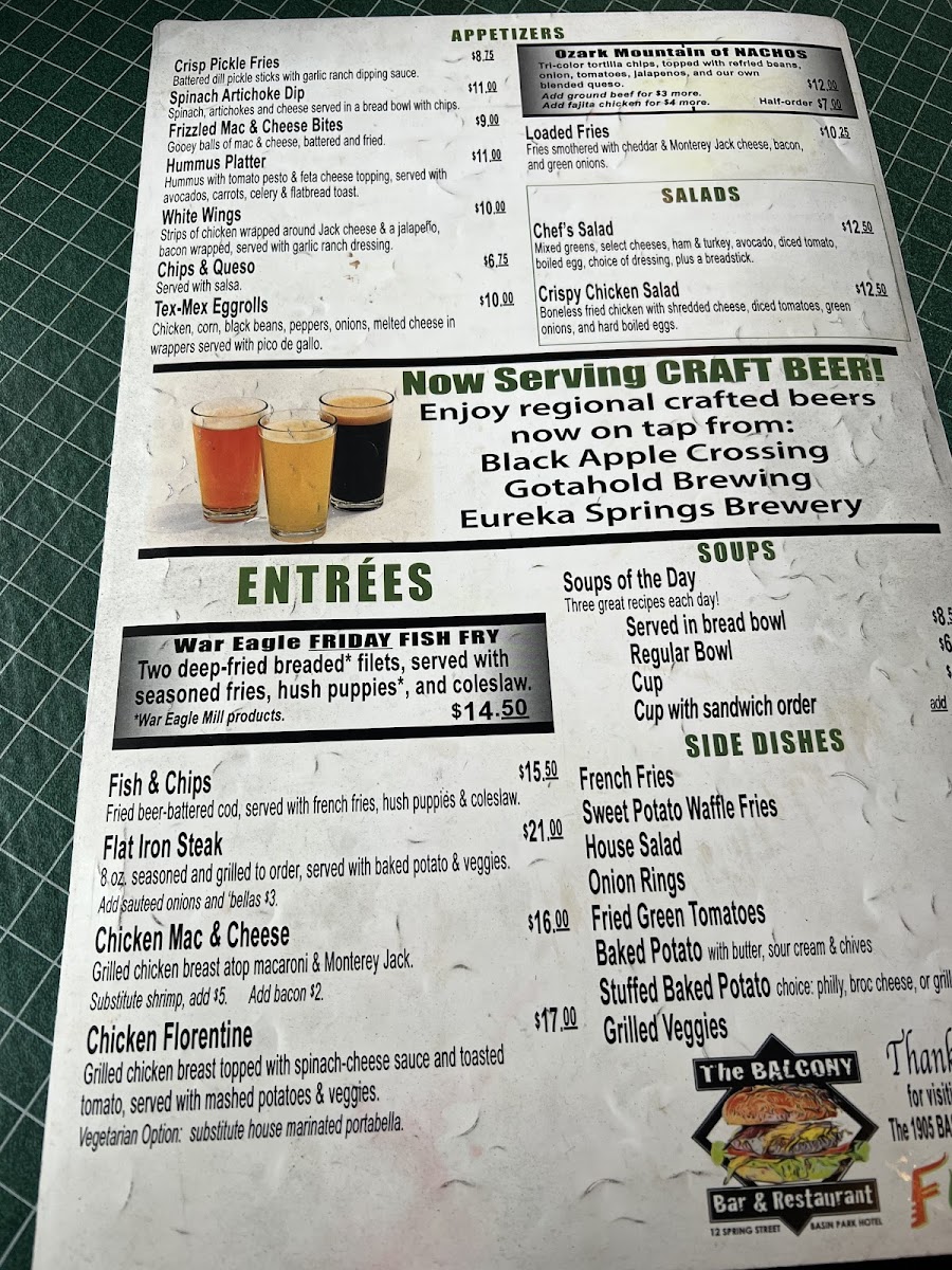 Welcome to Balcony Restaurant & Bar, a unique dining experience nestled in the heart of Eureka Springs, AR. Here, patrons can indulge in a delightful menu while enjoying breathtaking views and a vibrant atmosphere. Guests appreciate the option to dine indoors or on the scenic balcony, making it perfect for people-watching.